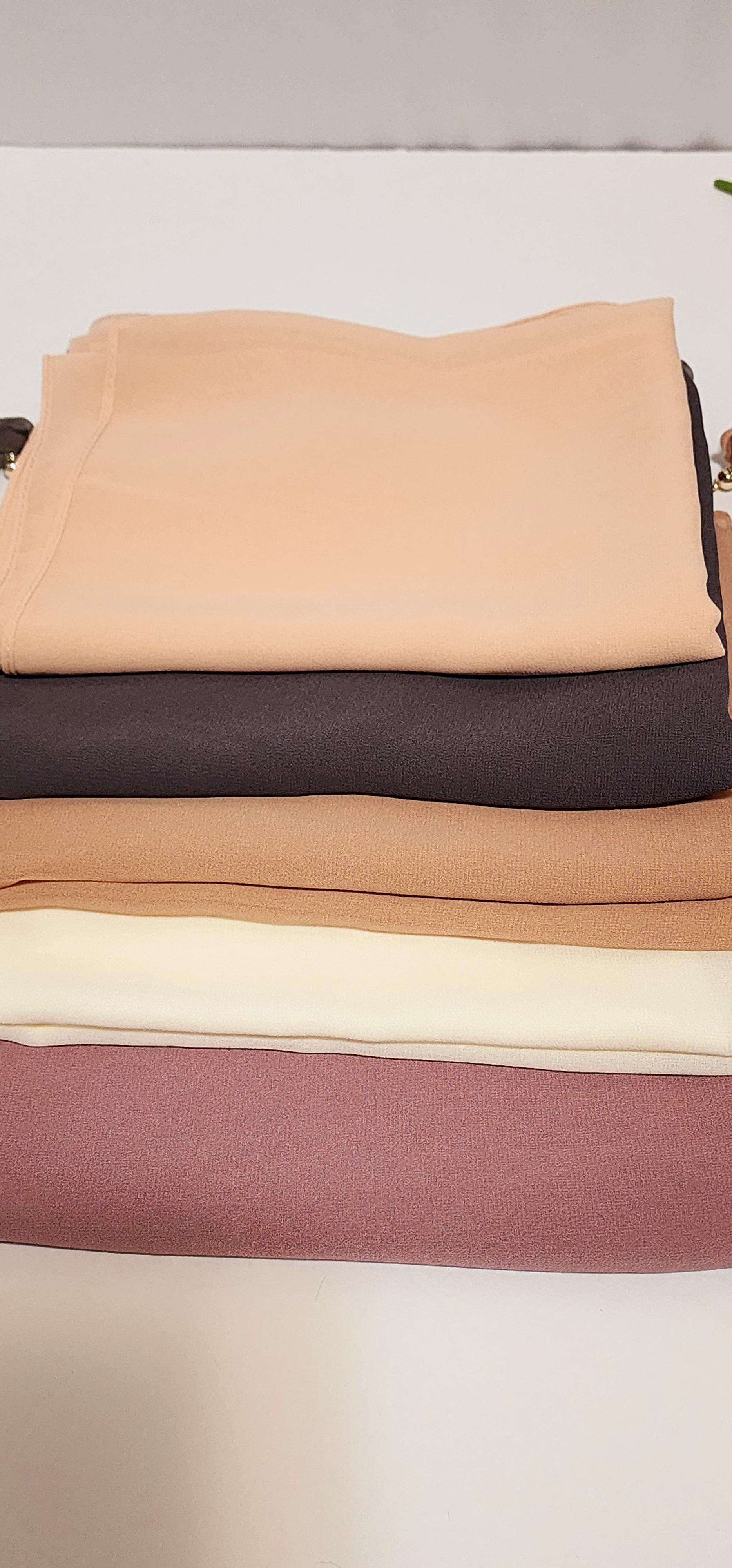 4. Storage: Store chiffon hijabs in a clean, dry place away from direct sunlight to prevent fading. Avoid hanging them on sharp hooks or edges to prevent snags.